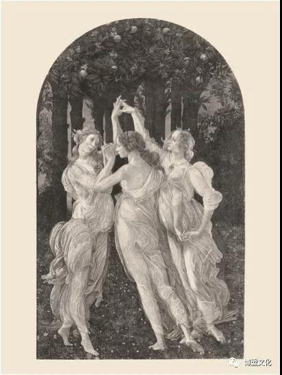 《美惠三女神》波提切利1445-1510《春》之局部,铜版年代19世纪,制版Andre Charles Coppier