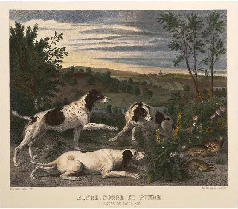 《路易十四的三猎犬》Francois Desportes 1661-1743,铜版年代1880年, 制版Leopold Massard