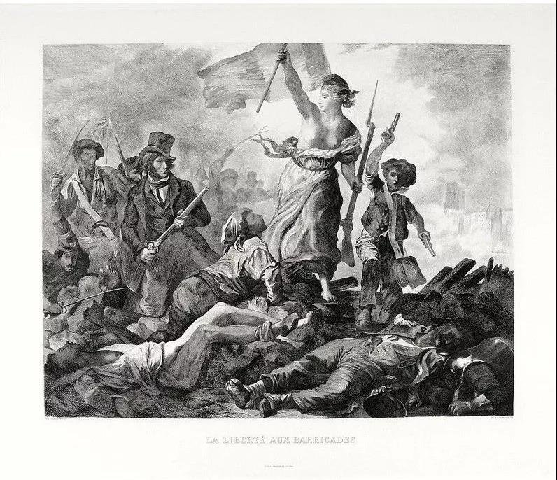《自由引导人民》Eugene Delacroix 1798-1863, 铜版年代19世纪, 制版 Louis-Adolphe Salmon