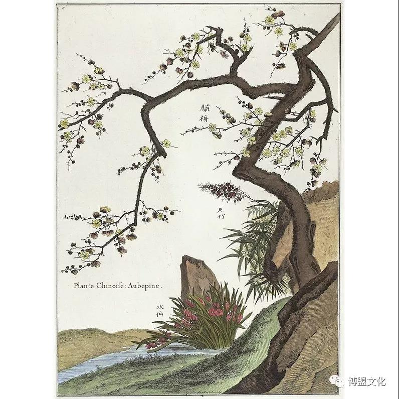 《皇家花园十景》之《中国植物:腊梅》制版 Nicolas Robert铜版年代1668-69 收集在 Louis de Chastillon《皇家雕版集成》一书中《国王的植物》