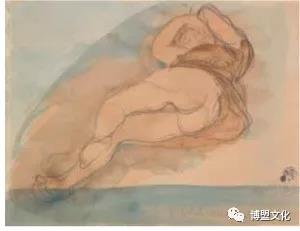 罗丹《侧躺的裸女,上身披着衣服》牛皮纸石墨铅笔,水彩 25.5* 32.5cm 1898-1907年