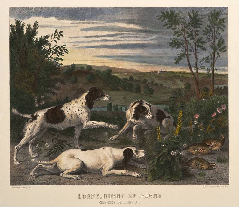 路易十四的三条猎犬波尼,侬尼和泊尼追鹧鸪