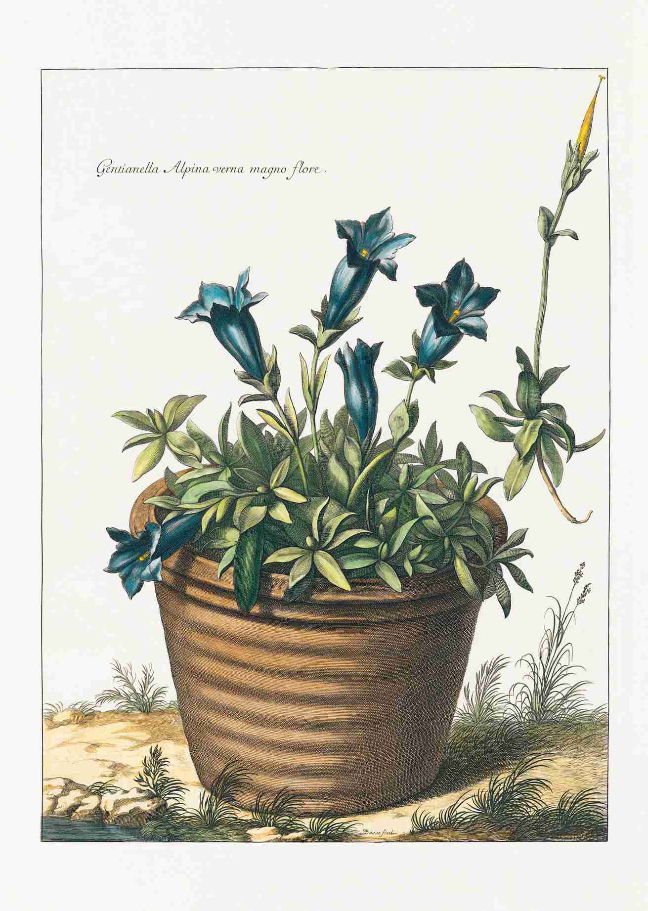 博思,1604-1676,雕塑家,画家,法国皇家学院院士,17世纪最出名的版画师,他的作品是法国巴洛克式的象征。龙胆科的很多属种都生长在山区,其中大都开有光亮的蓝色大瓣花,尤其壮丽的黄色大龙胆让人侧目。