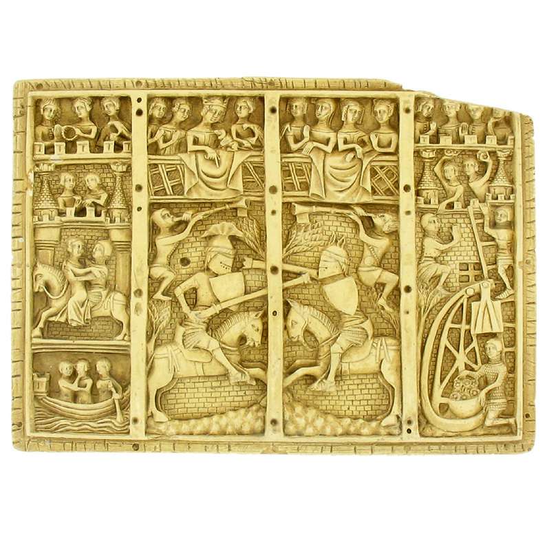这些雕刻的场景被称为著名的浪漫与爱情,勇敢和青春。它们是小型象牙雕刻物品诸如镜盒最青睐的主题。